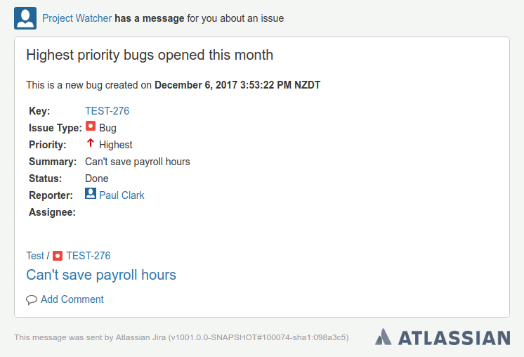 Below are some example emails. The screenshots show it is from Project Tracker because the user was created before the name of the plugin was changed to Watch It.
